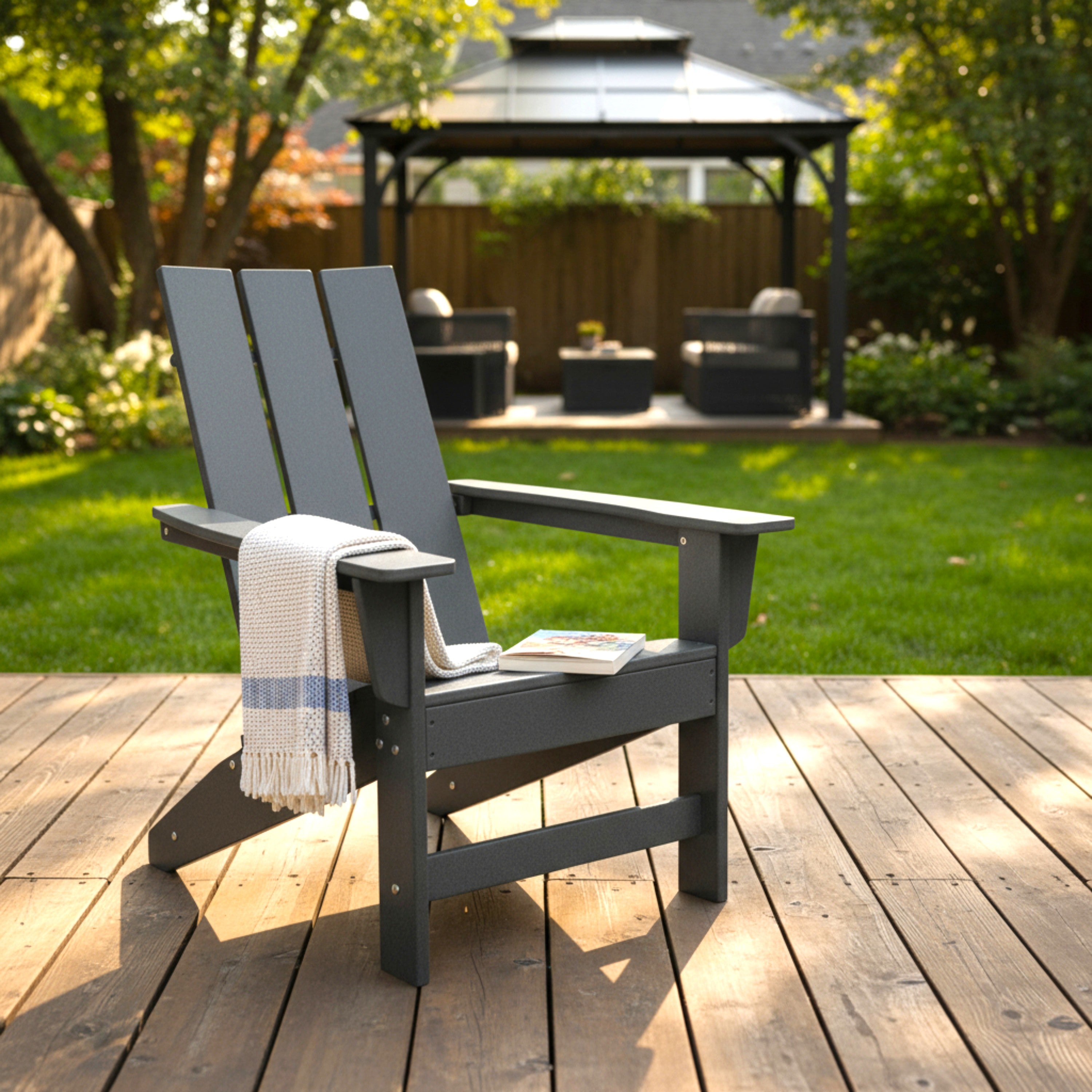 Settle into the embrace of a classic, where every curve invites you to unwind. This resin Adirondack chair offers timeless charm with modern durability, creating the perfect spot for quiet moments and shared sunsets.