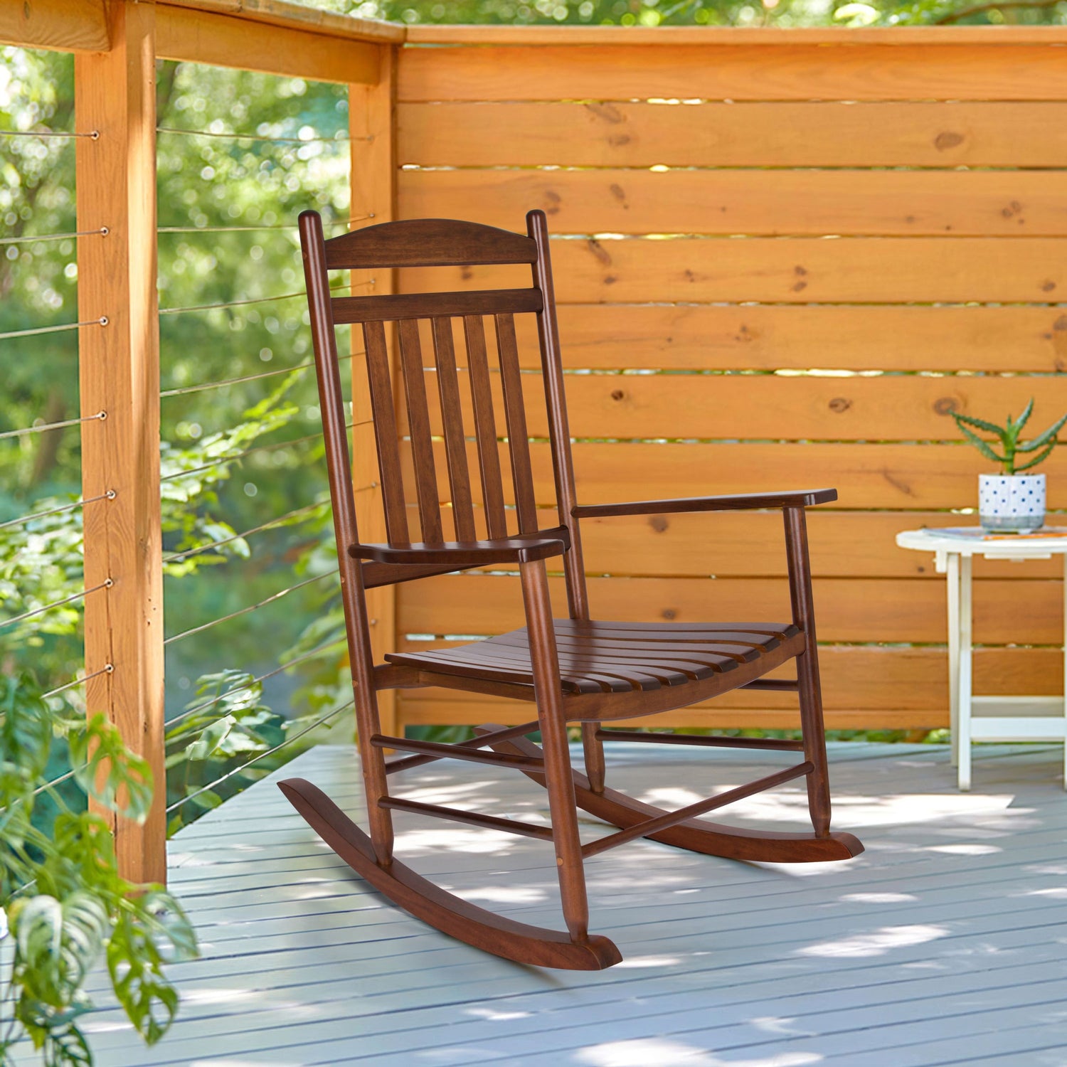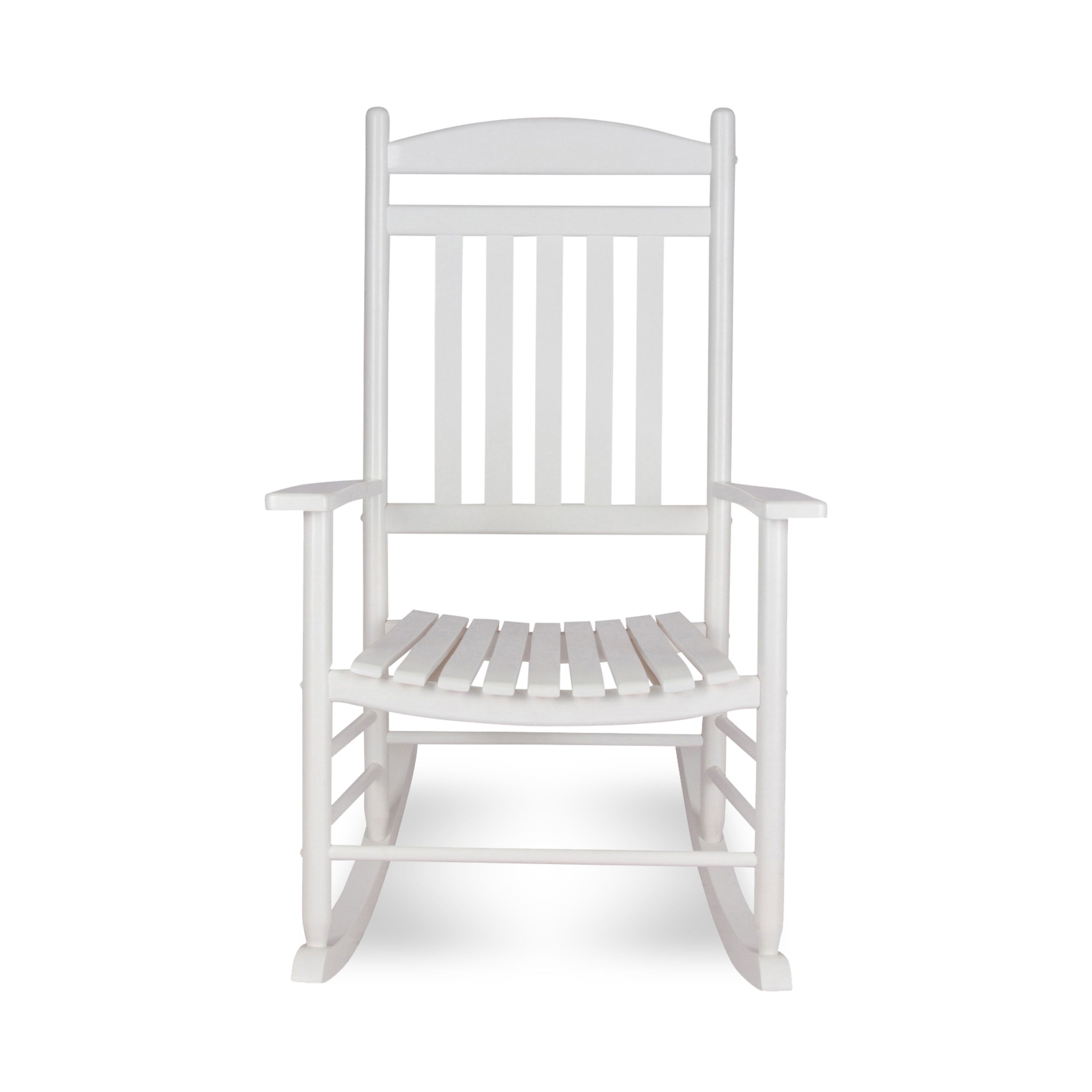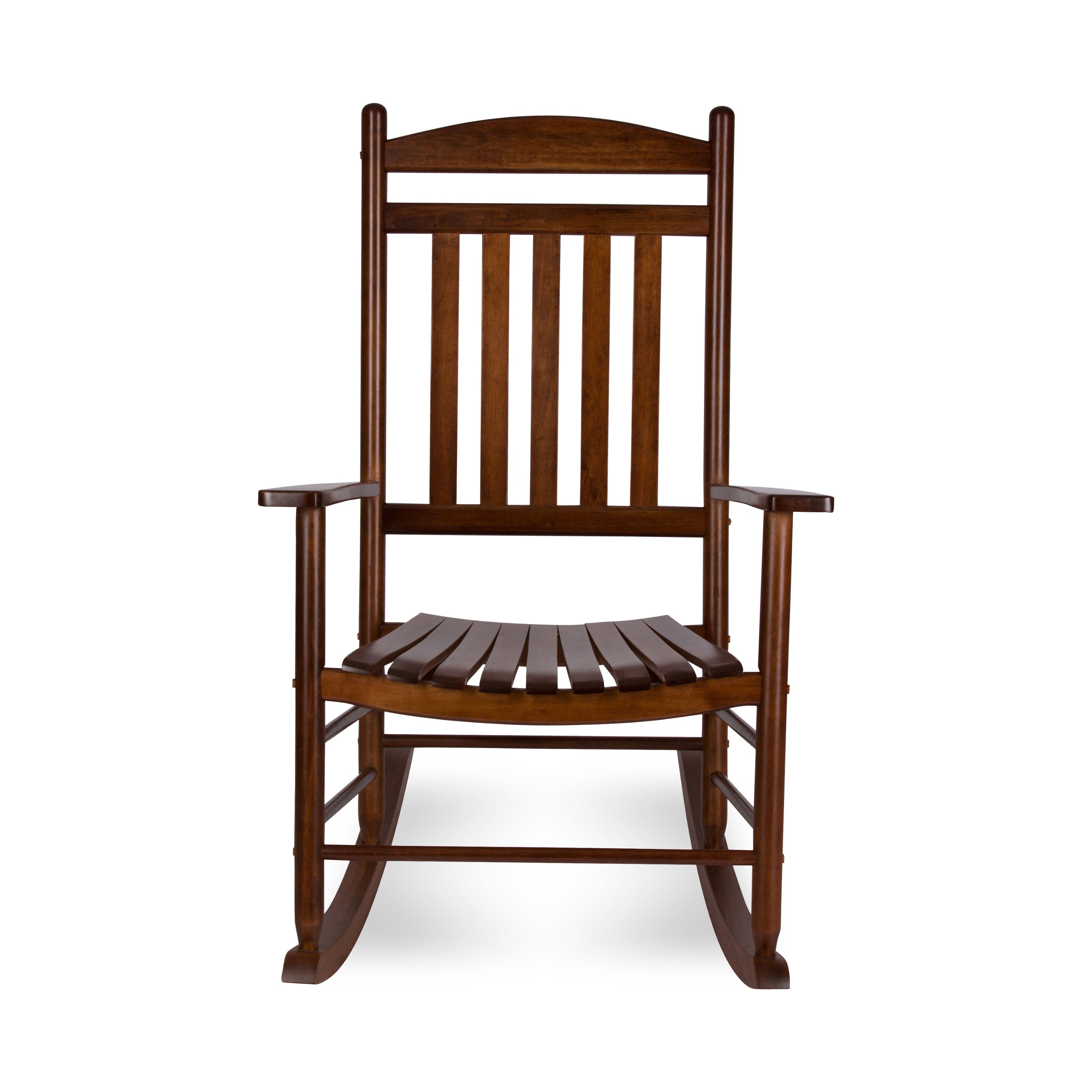 Constructed of hardwood and strong enough to withstand the elements without sacrificing the classic look you love, this rocker has vertical slats with beautiful, curved detailing making it the perfect accent piece to any front porch, walkway, garden, or deck.