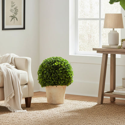 Meticulously handcrafted from the finest real boxwood, these 16" Preserved Boxwood Topiary Plants maintain a vibrant green hue and the authentic look of fresh foliage with minimal maintenance. Designed to deliver lasting natural beauty, they add a classic, timeless touch to any home, office, or special event décor. Perfect for tabletops, planters, or decorative displays, these boxwood topiaries offer effortless style year-round.