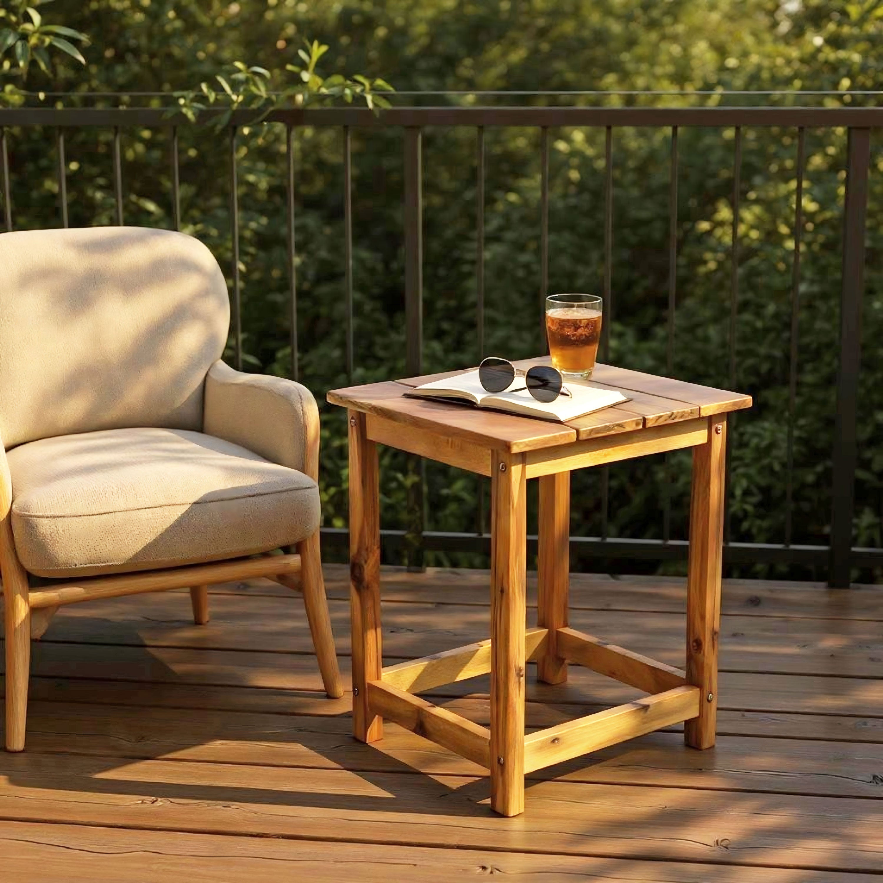 Add the perfect finishing touch to your outdoor space with our sturdy Modern Slatted Side Table from Shine Company. Crafted from high-quality Acacia wood, known for its natural resistance to the elements, this table complements your Adirondack furniture set beautifully. Designed to withstand the elements, it offers both strength and lasting style. Available in a variety of finishes and colors to match your outdoor decor.