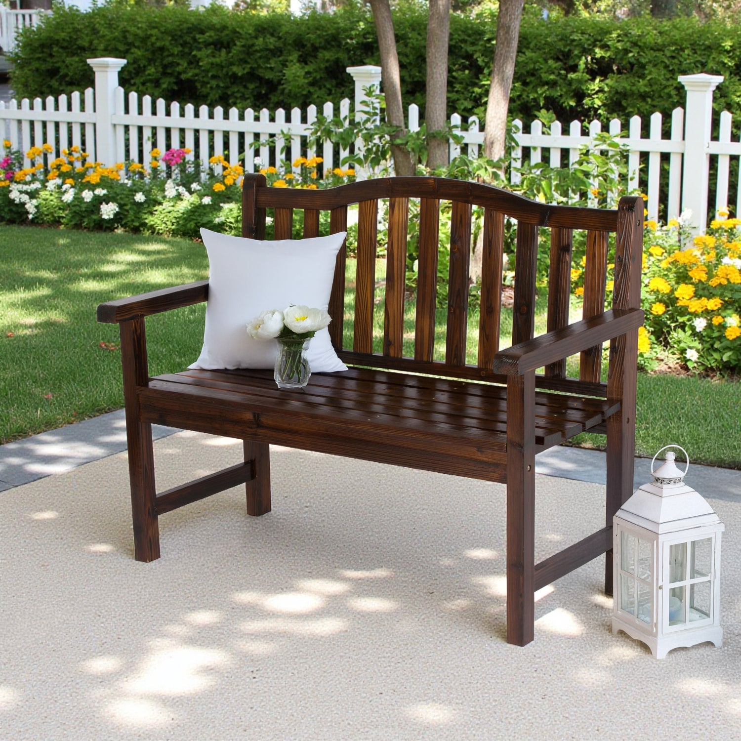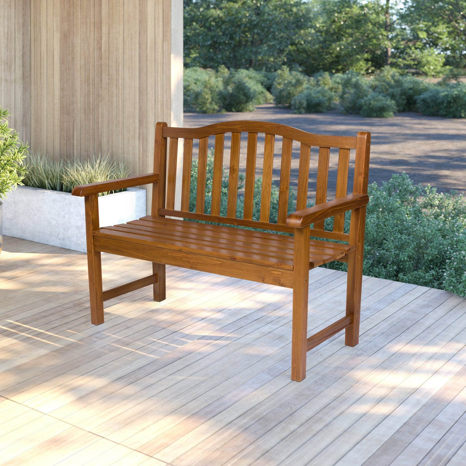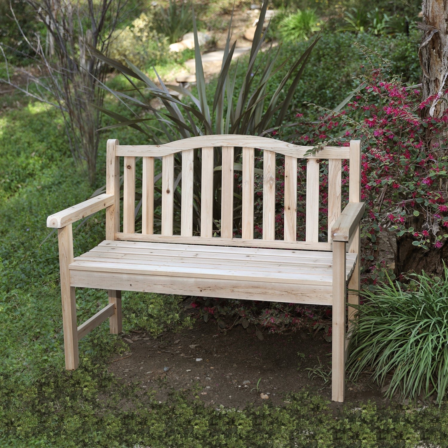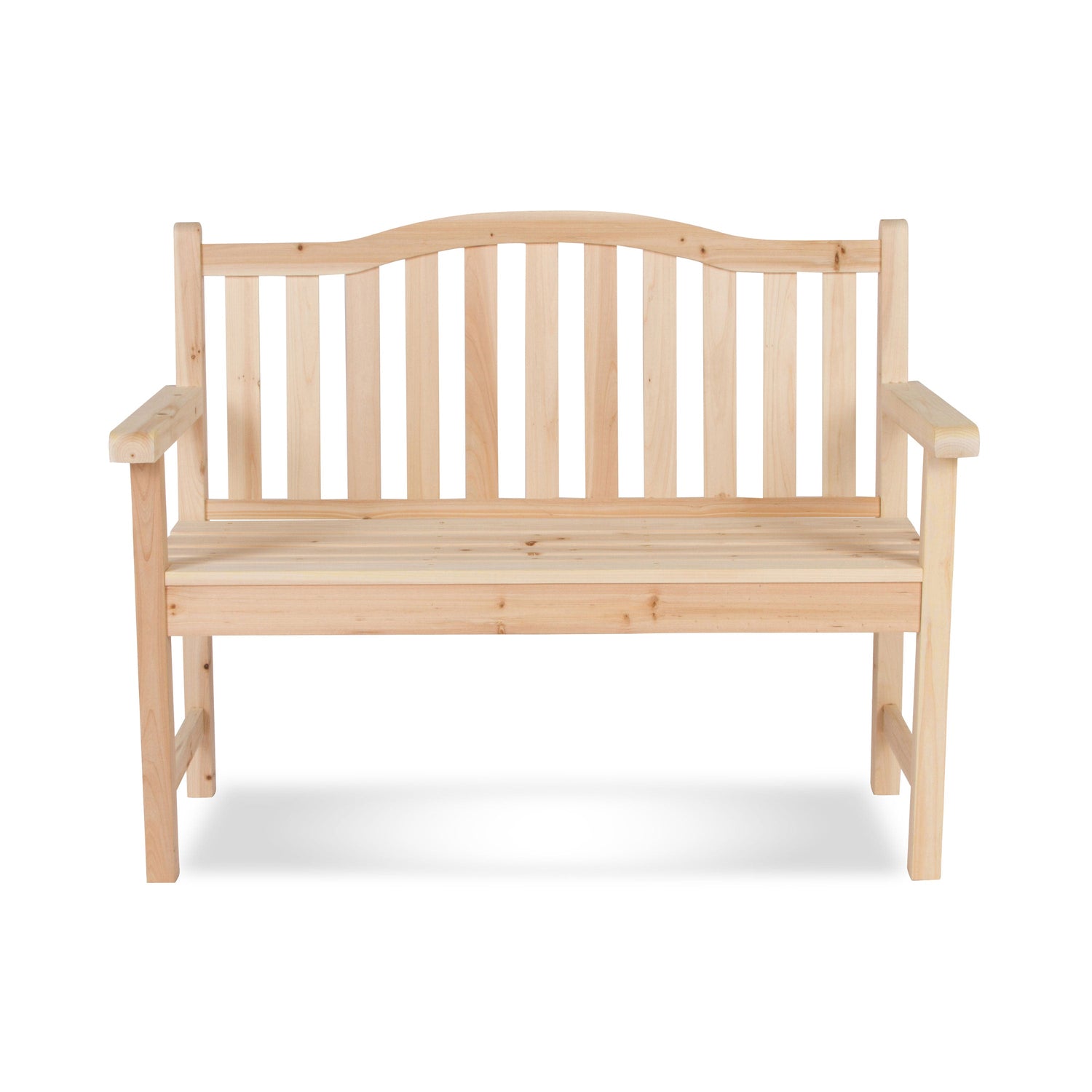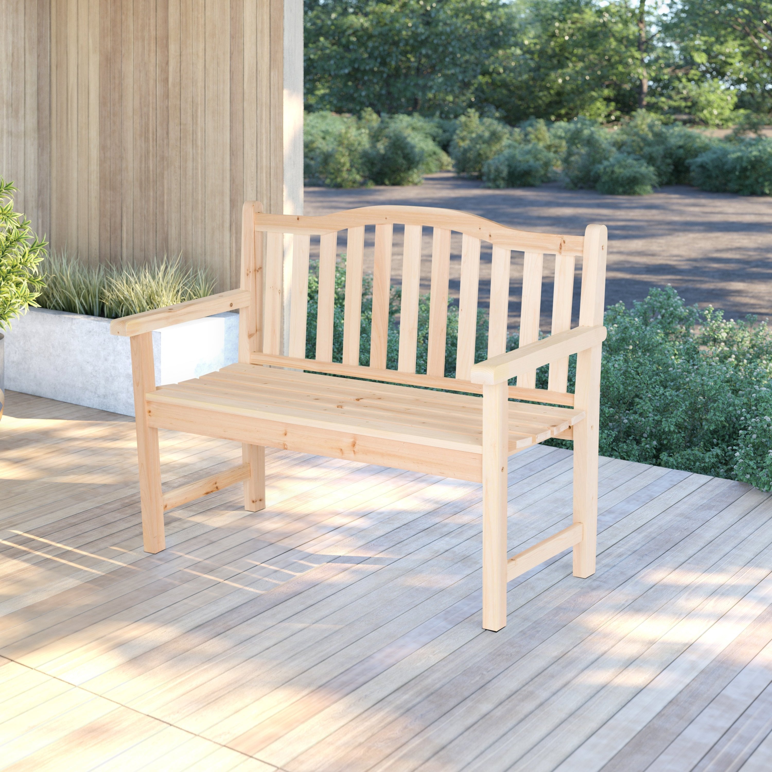 A modern twist on a classic style, our Belfort Garden bench has an arched back design and an ample 43-inch seating area. Constructed out of cedar wood known for its natural resistance to moisture, decay, and insect damage making it low maintenance.