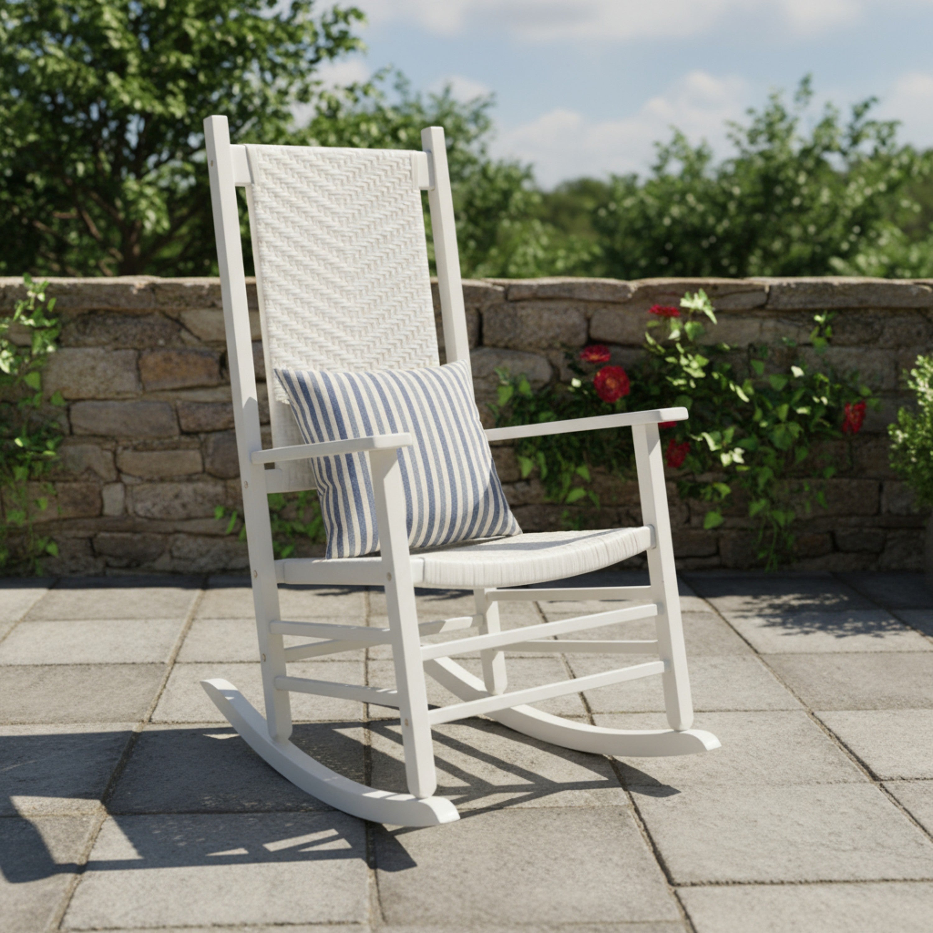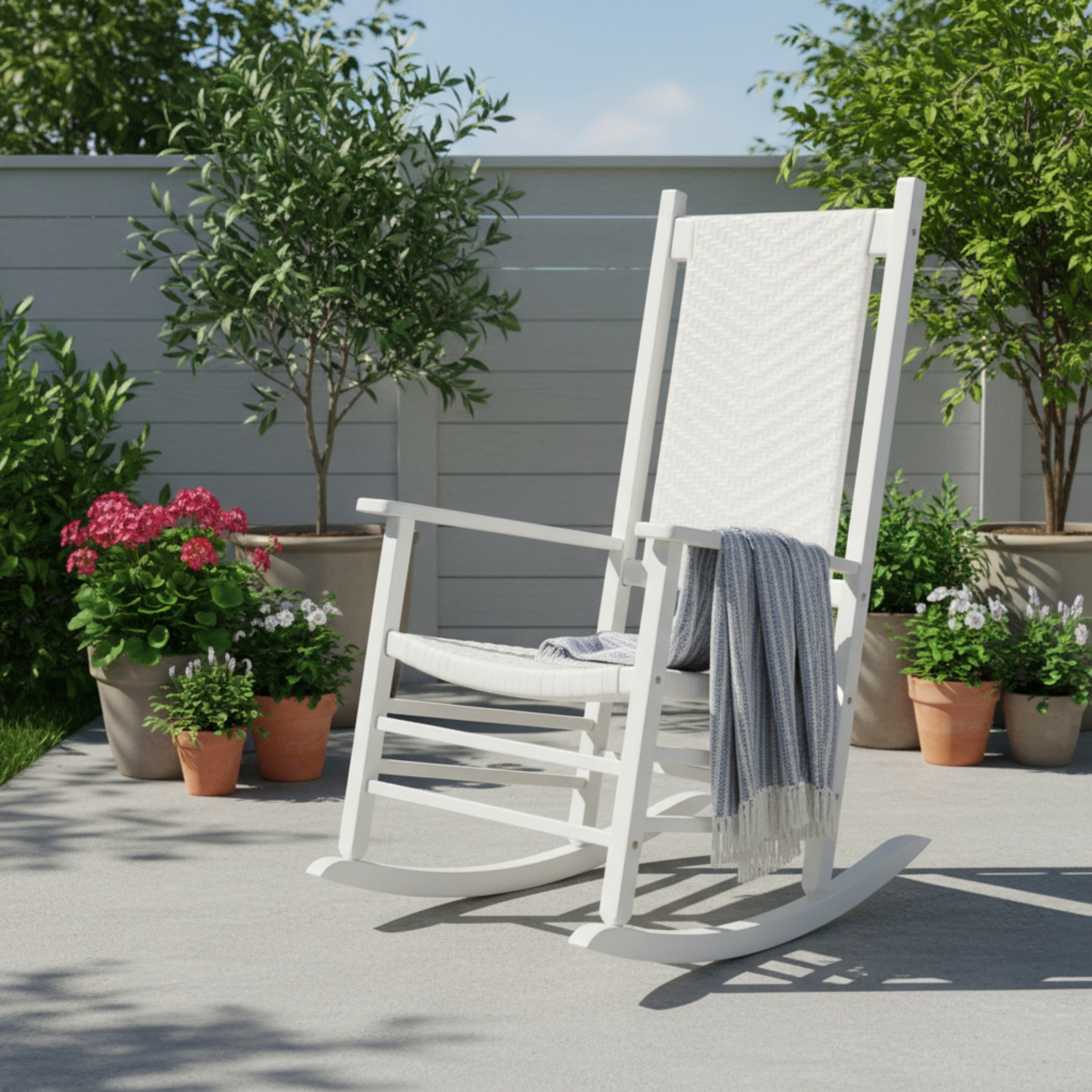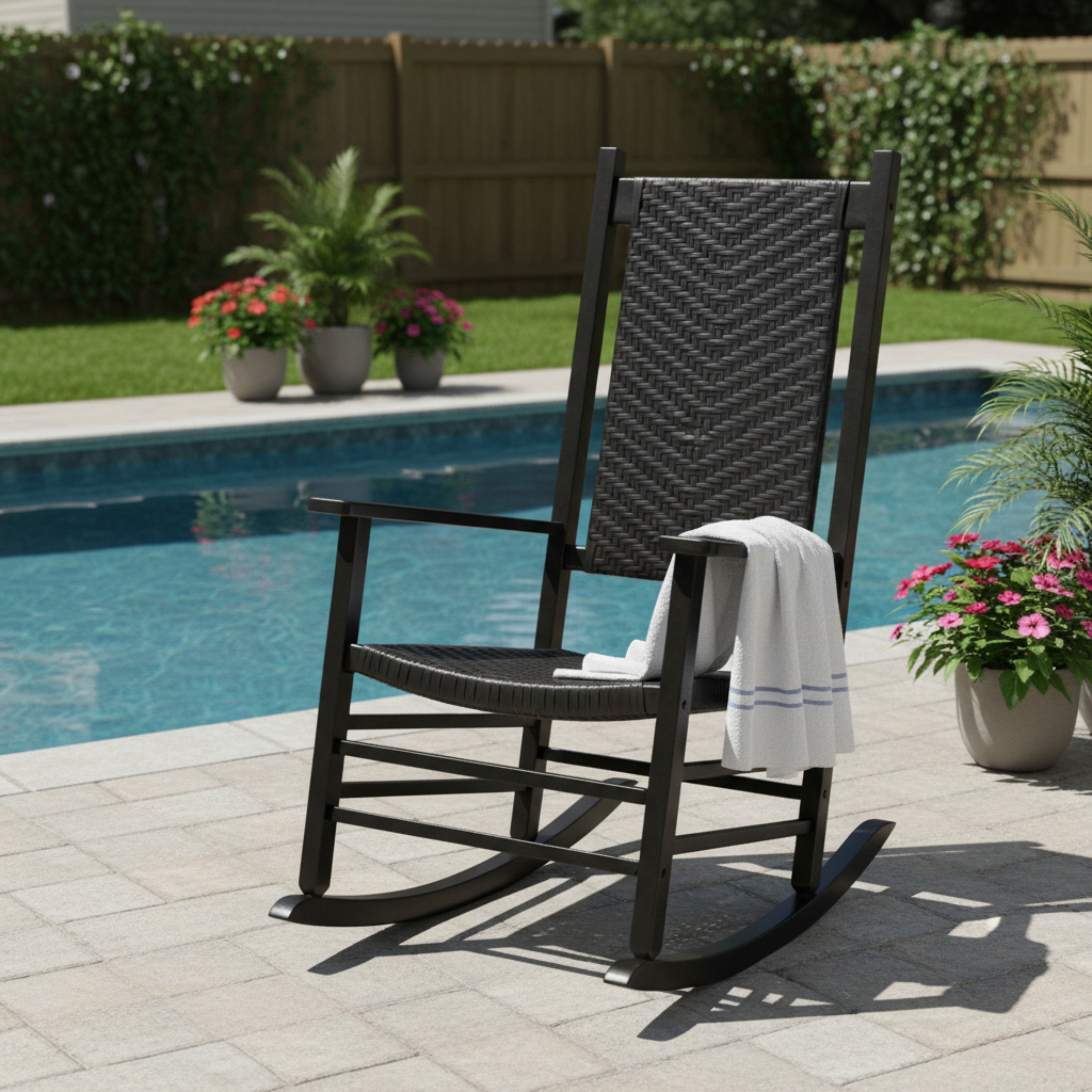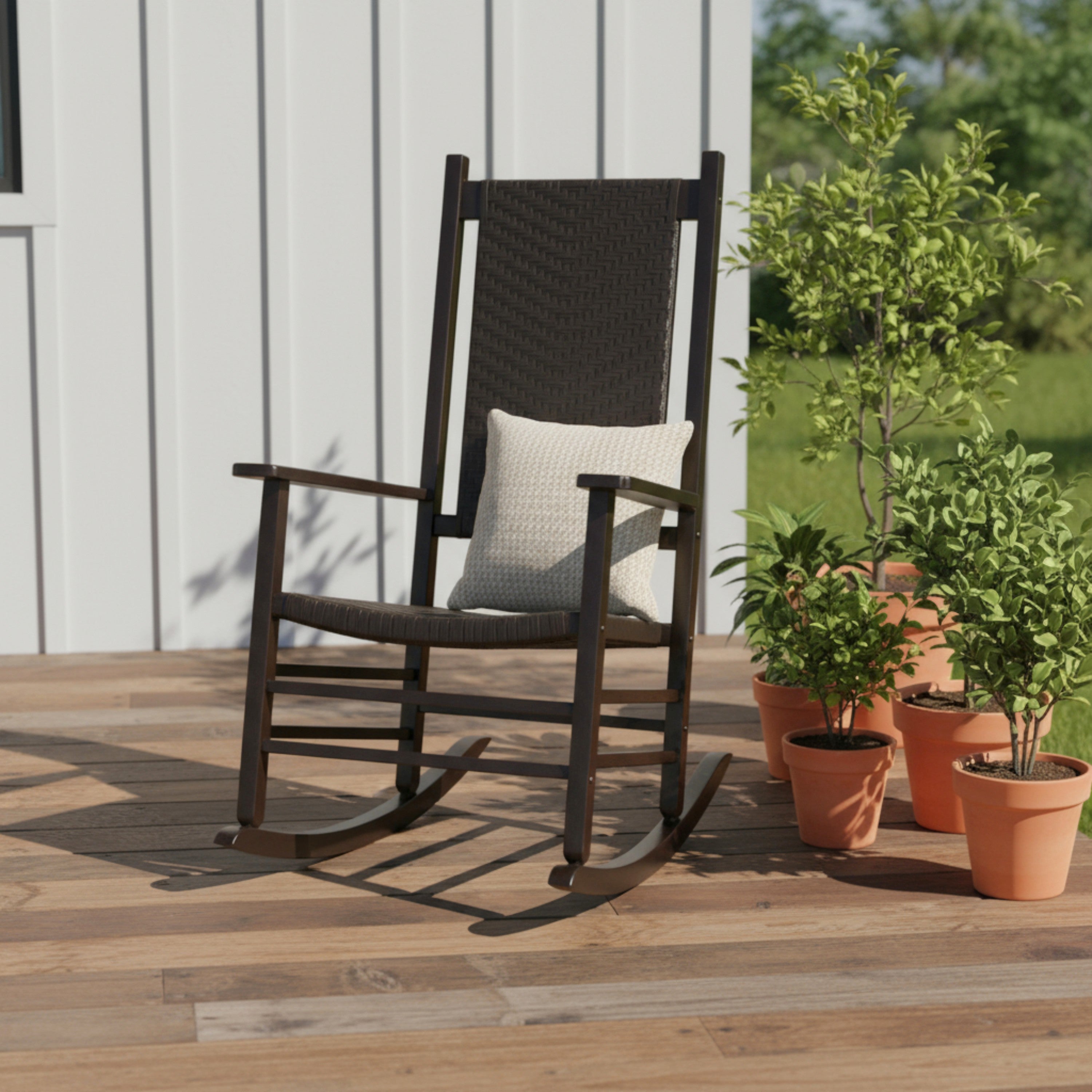 Relax in the beautiful outdoors in your very own Hampton Porch Rocker. Constructed strong enough to withstand the elements without sacrificing the classic look you love, this rocker has straight, clean lines with a solid rattan back support and seat, making it the perfect accent piece to any front porch, walkway, garden, or deck.