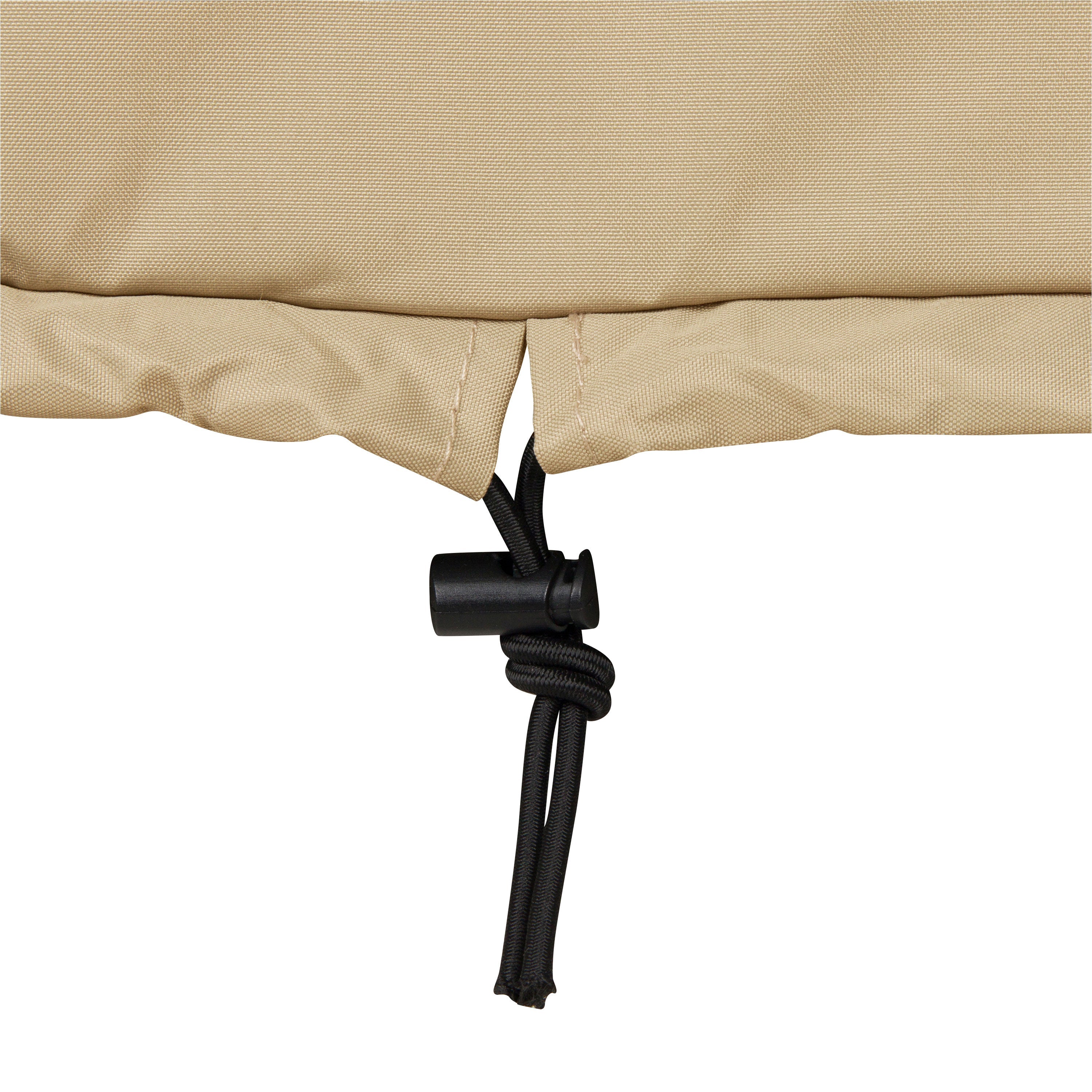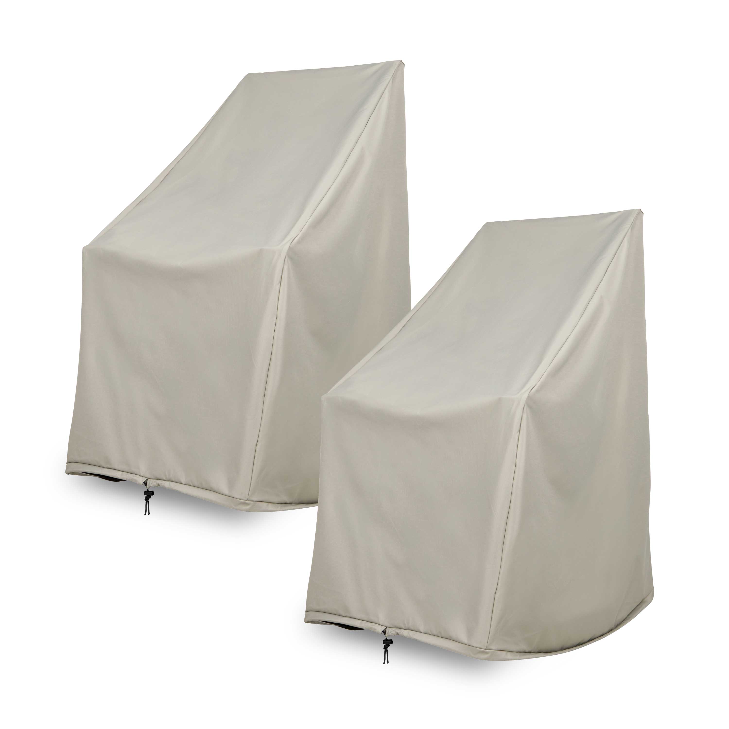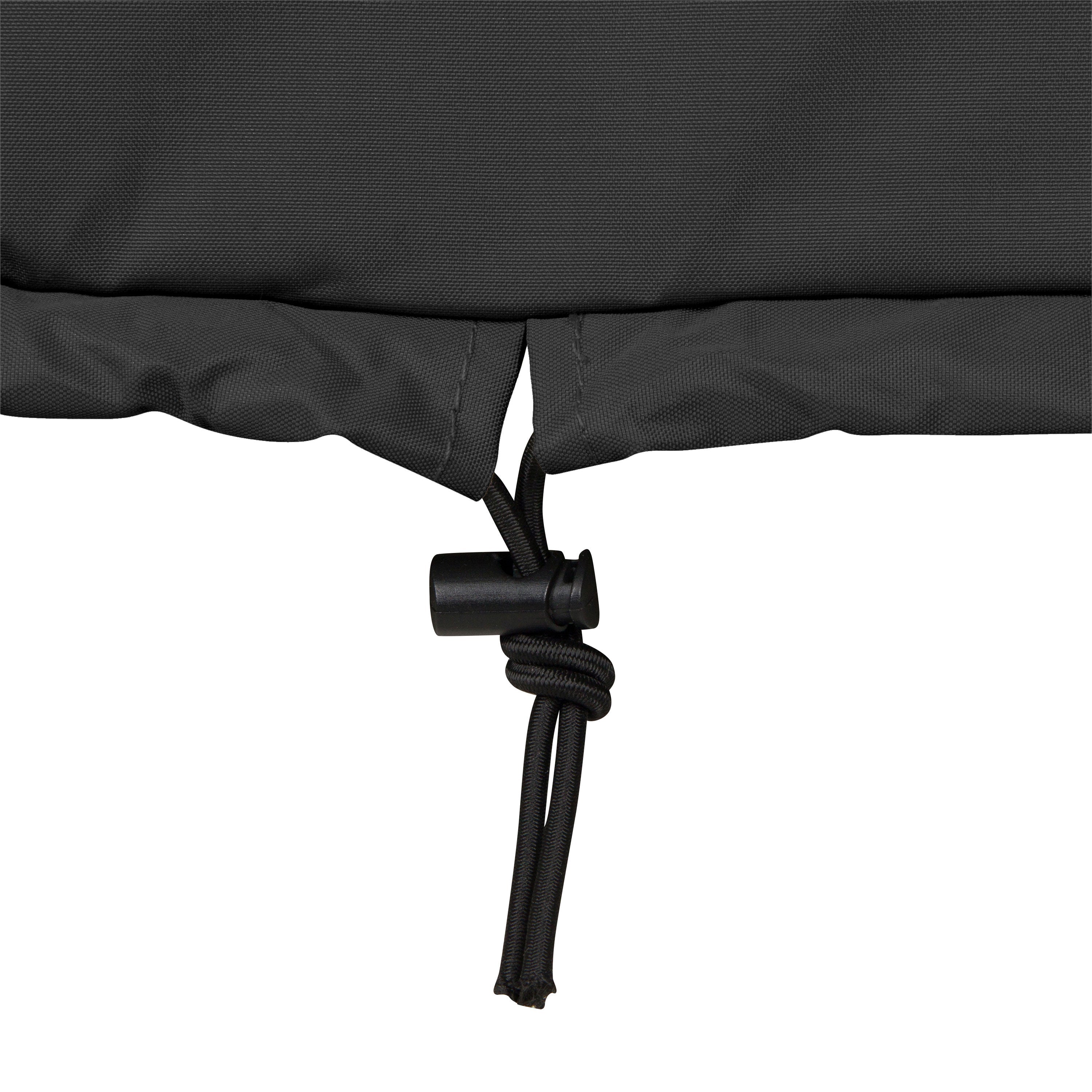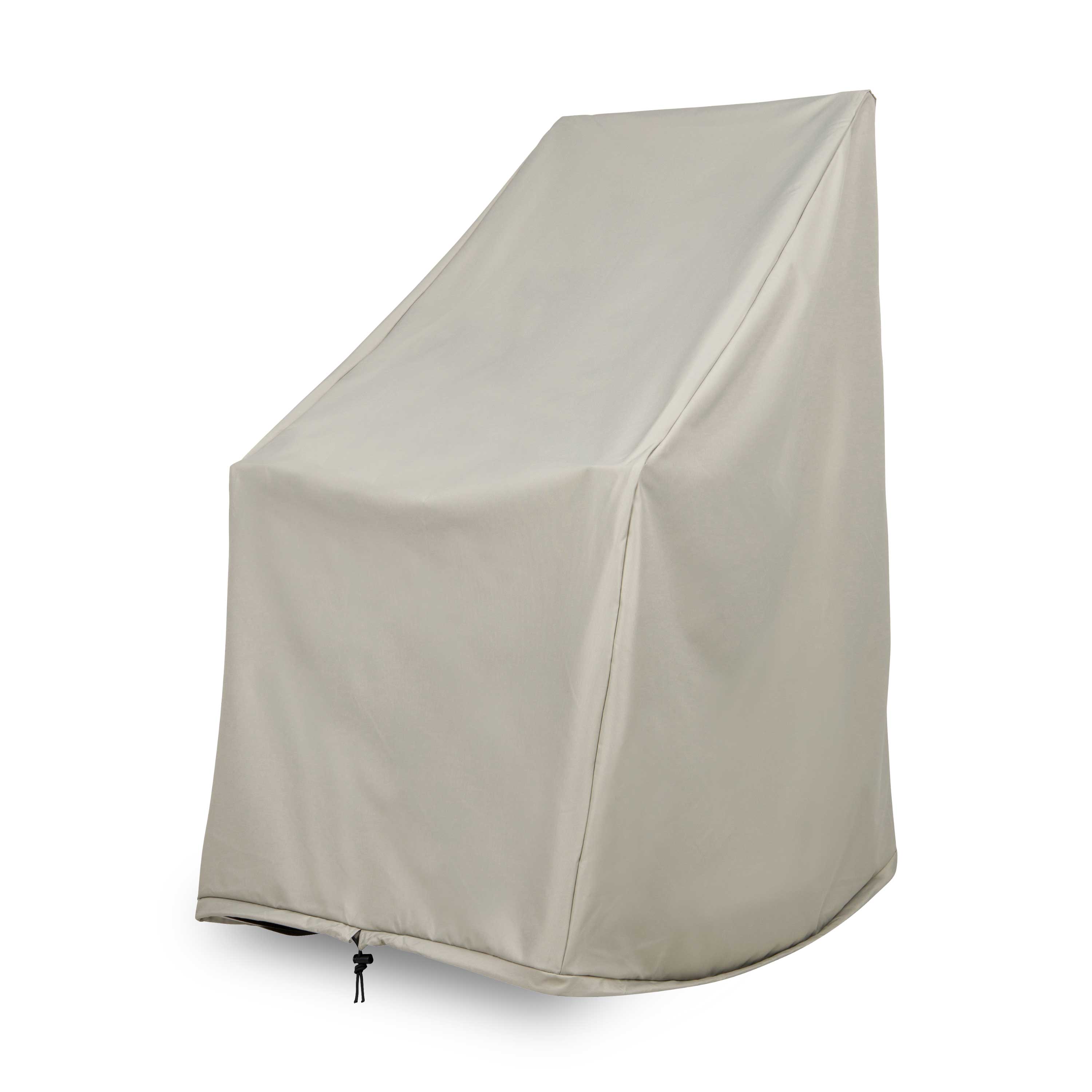Crafted from 100% woven polyester fabric with laminated undercoating with UV protection shields your chairs from the elements. The cover features an elastic hem cord with a toggle, allowing for easy fitting and removal. This ensures a secure fit, even on windy days, while providing a snug and personalized look.