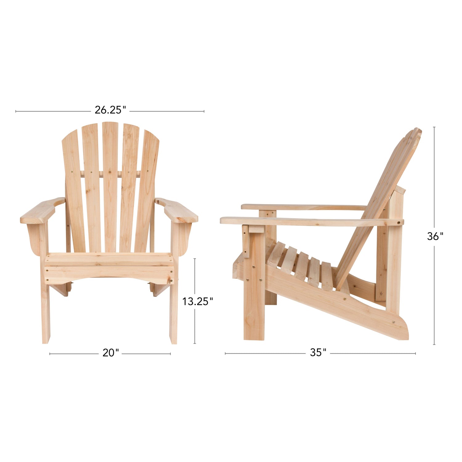 Nothing says outdoor relaxation vibes like this sturdy cedar Rockport Adirondack Chair. Strong enough to withstand the elements without sacrificing the classic look you love, this chair's ergonomic design features wide arms, a contoured seat, and high back support transporting you to relaxation. Kick back and grab a seat on the back patio, at the beach, or around the campfire.