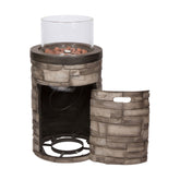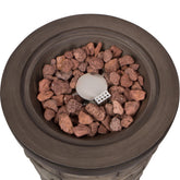 Sevilla 18in. Round Outdoor Propane Gas Fire Column with Glass Guard and Lava Rocks, Stone
