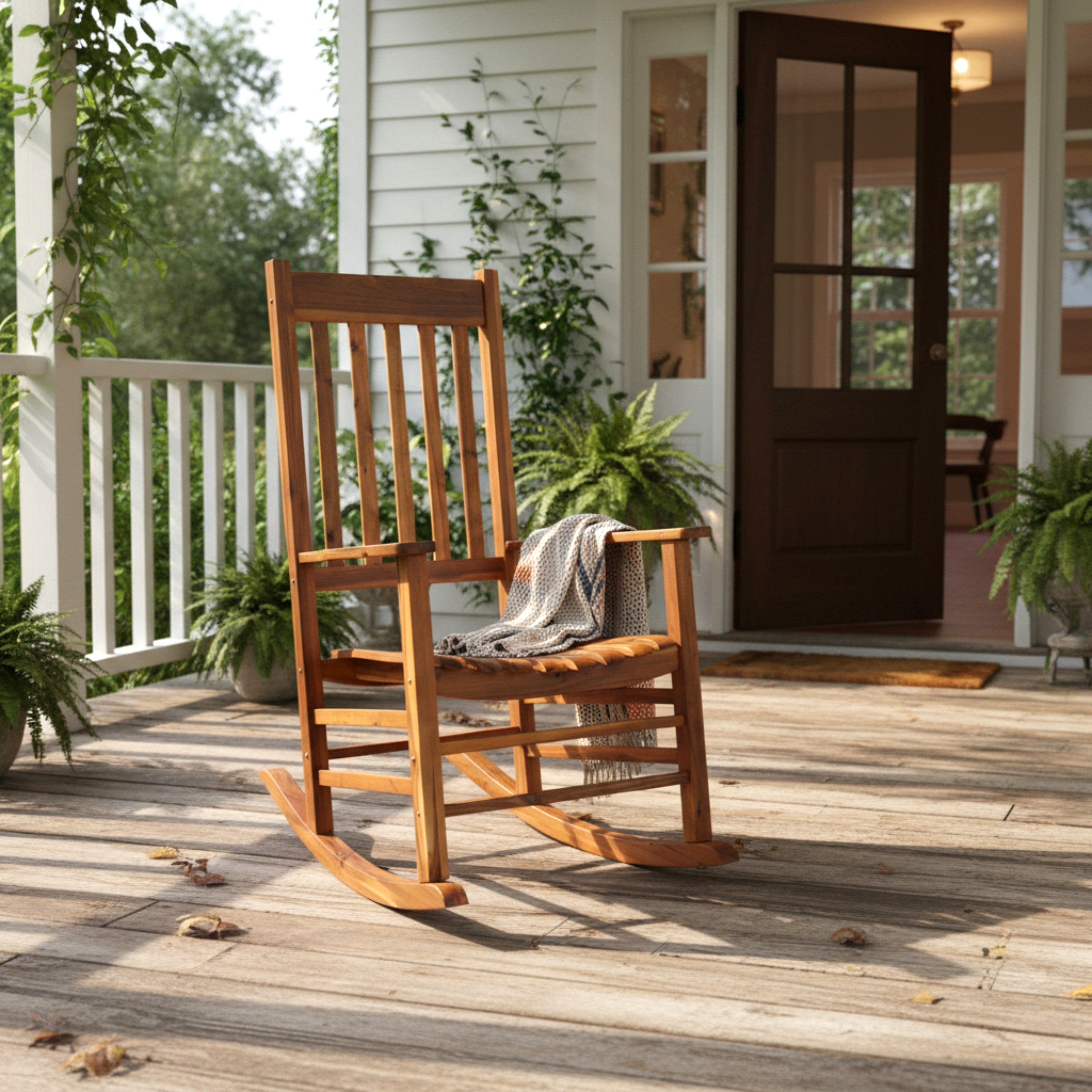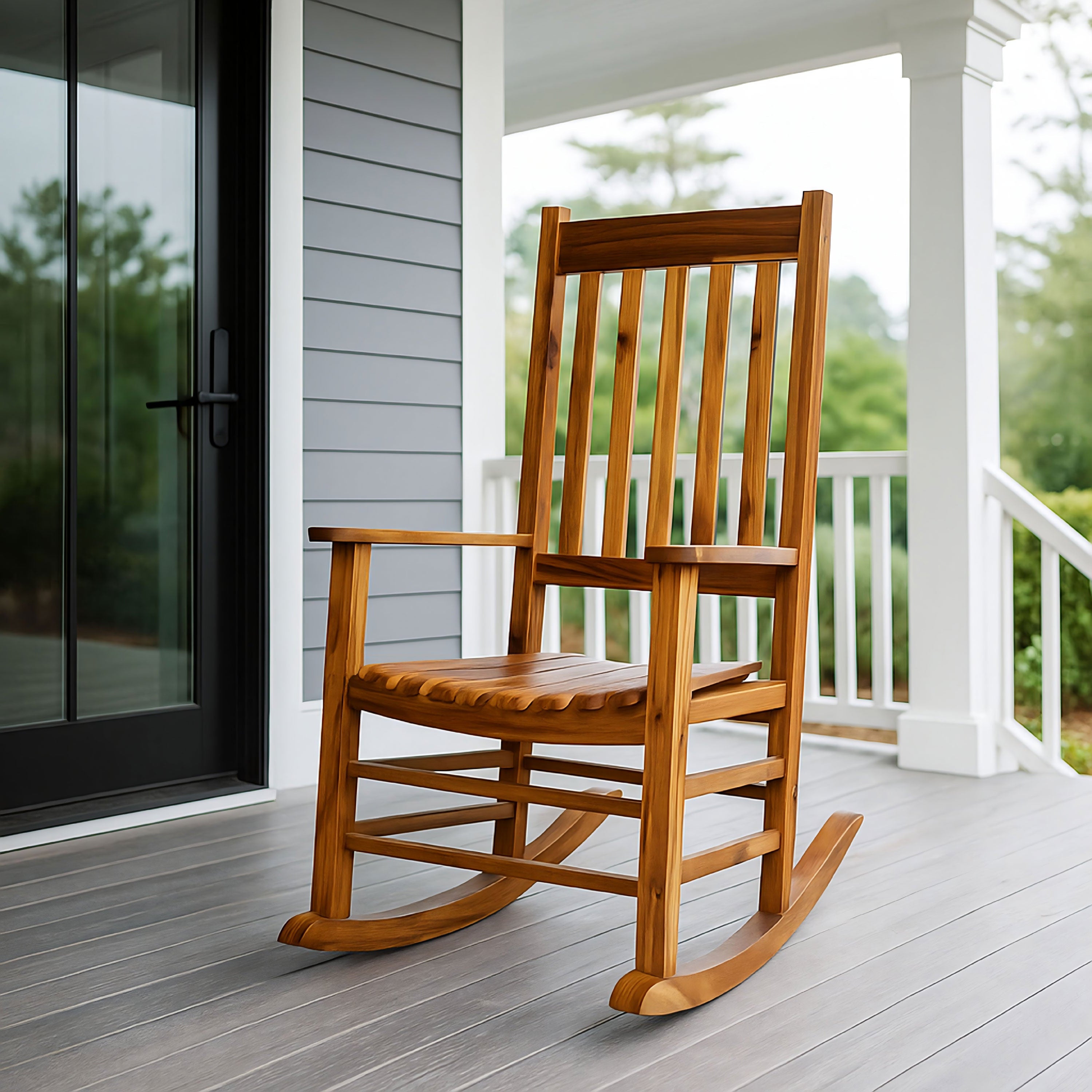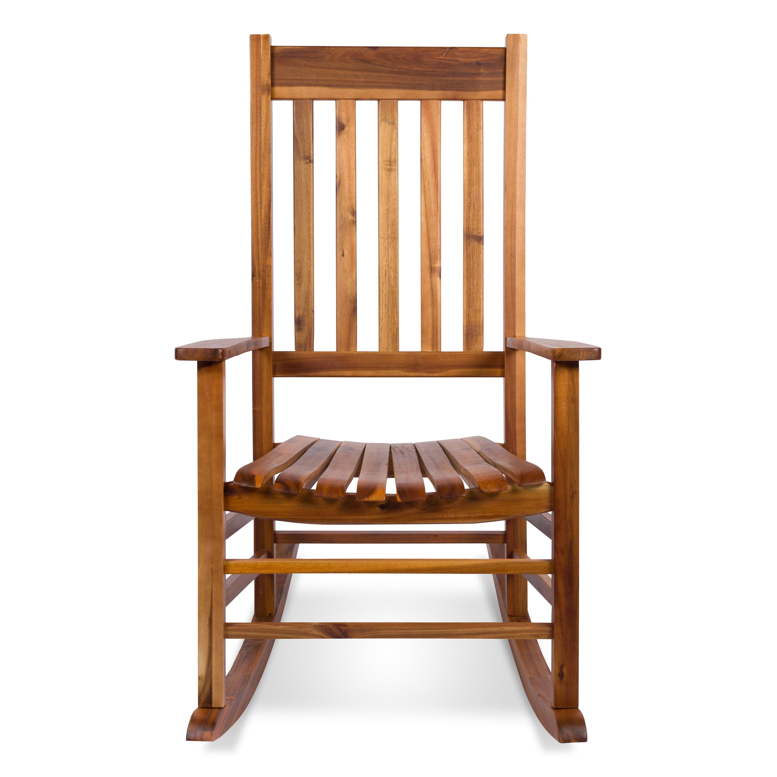 Relax in the beautiful outdoors with your very own Vermont Acacia Wood Porch Rocker from Shine Company. Built to withstand the elements without sacrificing the classic look you love, this rocker features straight, clean lines, making it the perfect accent piece for any front porch, walkway, garden, or deck. Available in a variety of finishes and colors.