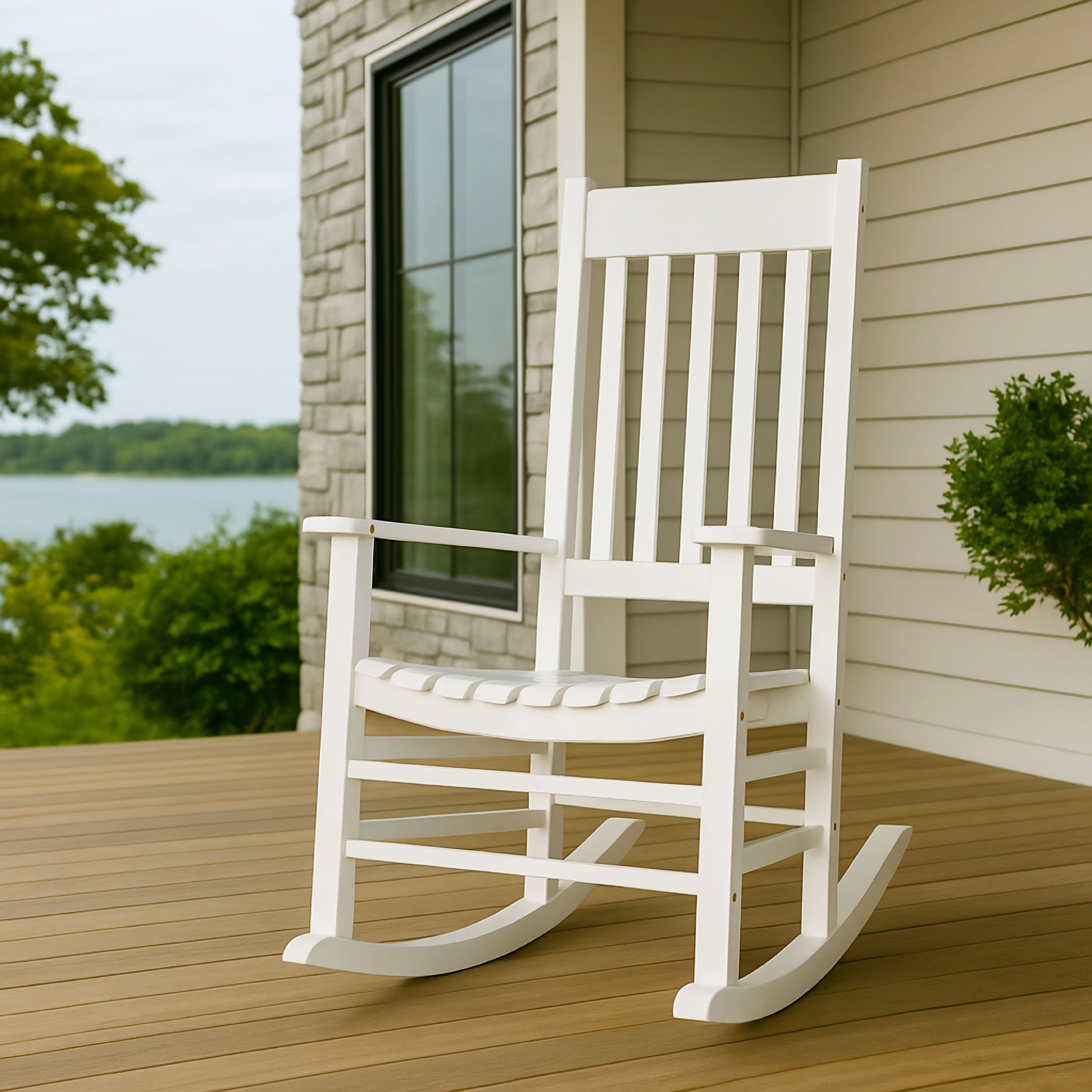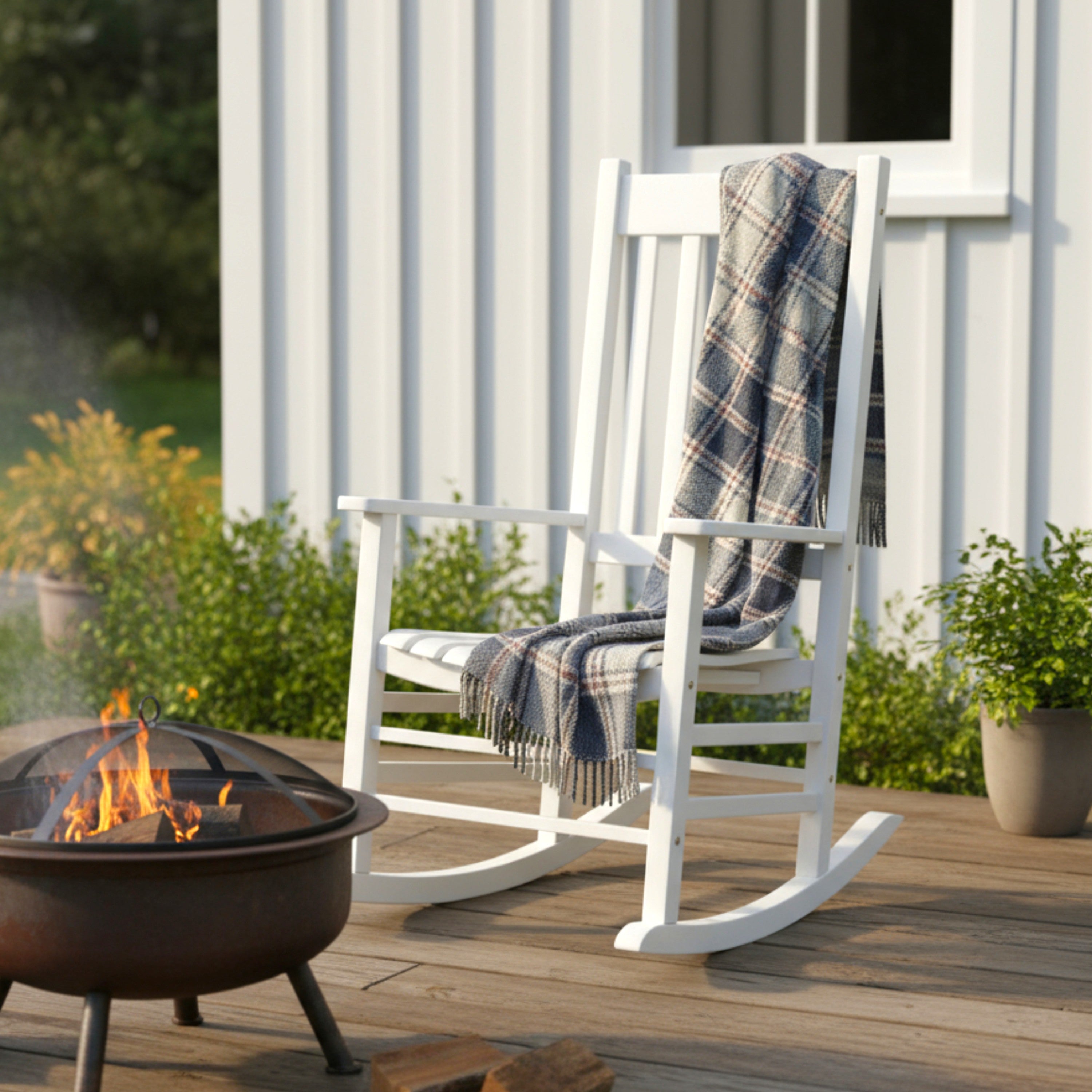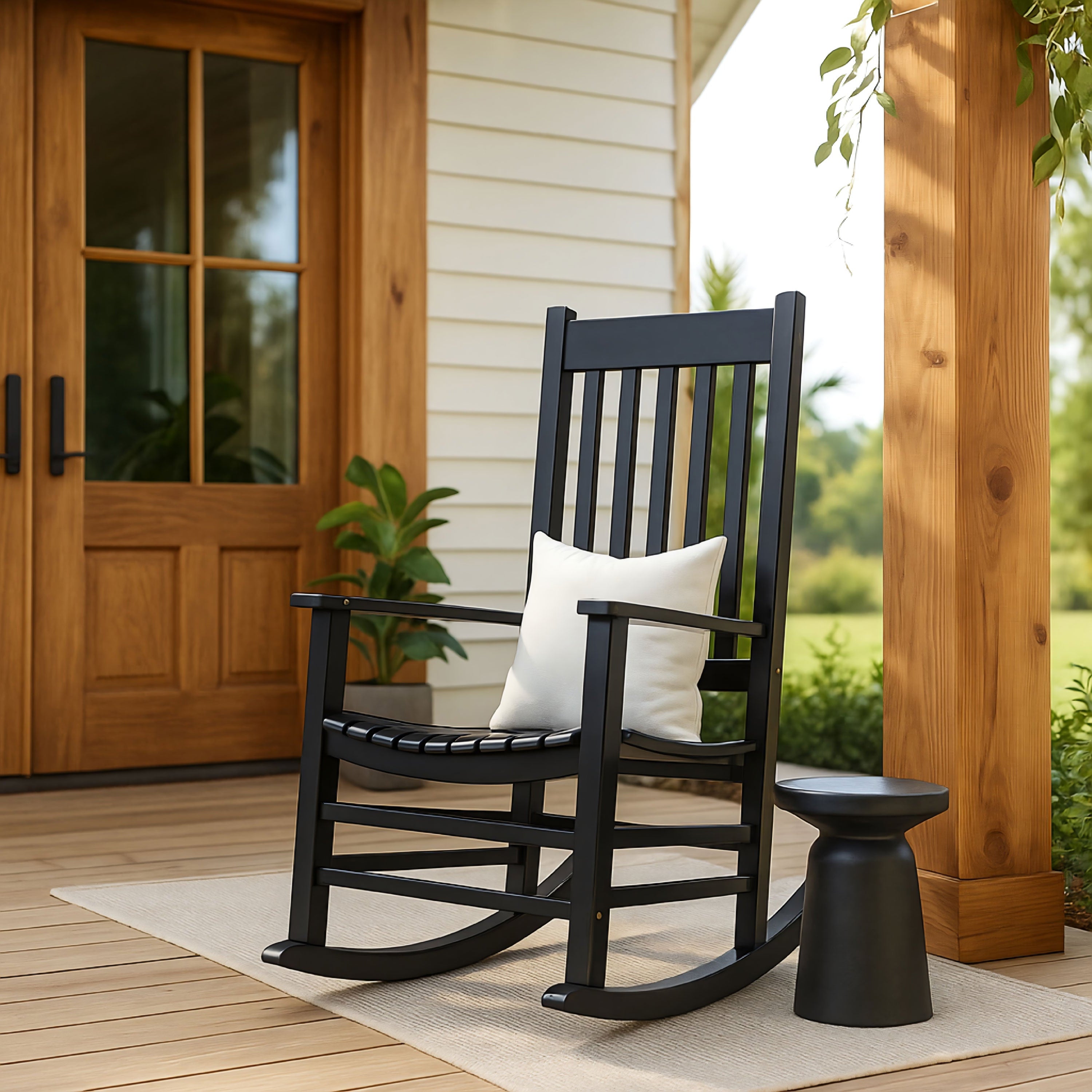 Relax in the beautiful outdoors with your very own Vermont Acacia Wood Porch Rocker from Shine Company. Built to withstand the elements without sacrificing the classic look you love, this rocker features straight, clean lines, making it the perfect accent piece for any front porch, walkway, garden, or deck. Available in a variety of finishes and colors.